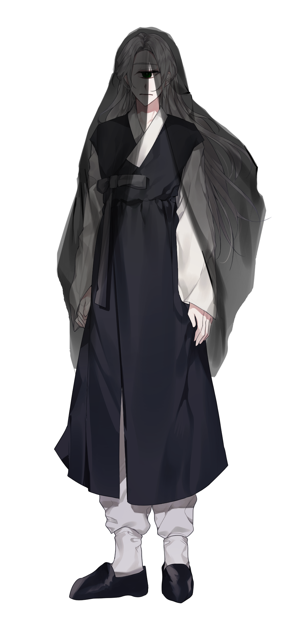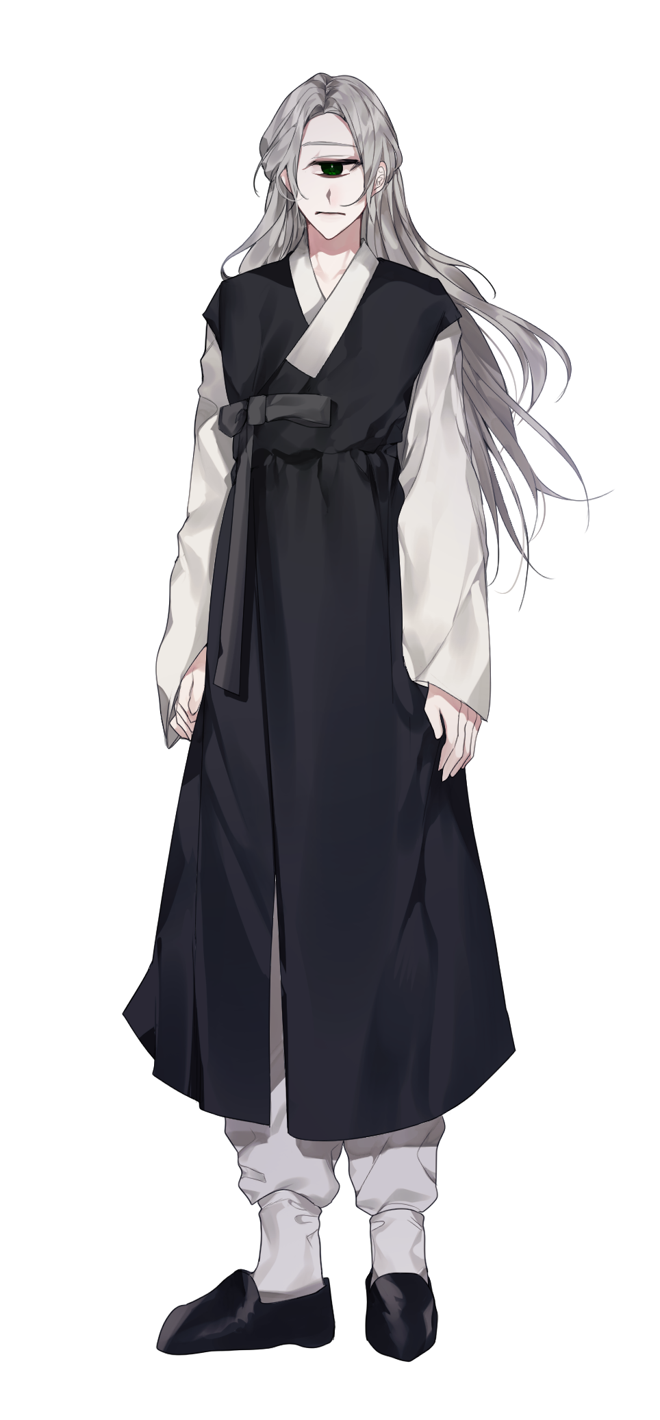 대표 이미지 출처 : @__mit9923님 커미션 魑魅魍魎 :: 요괴들의 연회 커뮤 러닝 캐릭터 "하, 힘들다." 190cm 평균 7354살 외형 20대 후반 회색 머리카락이 하나뿐인 눈을 가리지 않게 양쪽으로 갈라 길렀고, 허리까지 내려오는 머리카락을 한차례 정리하기 위해 검은색 끈으로 반을 묶었다. 큰 키를 이용해 항상 아래를 내려다보는 눈빛을 가졌고 하나뿐인 눈은 검은색으로도 오해할 수 있는 짙은 초록. 손이 긴 편이며 혀도 원한다면 가슴까지 내려올 정도로 길게 빼어낼 수 있다. 외눈을 무서워하는 인간들이 많아 기생이 쓰던 전모에 붙어 있던 너울을 뜯어내 머리 위에 올리고 다닌다. 요괴가 신으로 받들리던 시절을 영원토록 그리워한다. 힘이 약한 요괴여도, 인간들에게 나타나는 것만으로도 제물을 받아먹을 수 있던 시절을. 항상 누군가의 위에 서있길 바랐고 눈빛도 표정도 그런 식이 었다. 하지만 결국 겁쟁이. 퇴마사를 피해 깊은 숲 속에서 죽지 않을 정도로만 숨을 죽이고 살아가다가 결국 요괴들의 연회에 나타난 퇴마사들을 피해 인간세상으로 숨었다. 두 눈으로 보이는 세상이 어지럽다고 말하지만, 오히려 숨어 살던 시절보다 숨통이 트인다고.