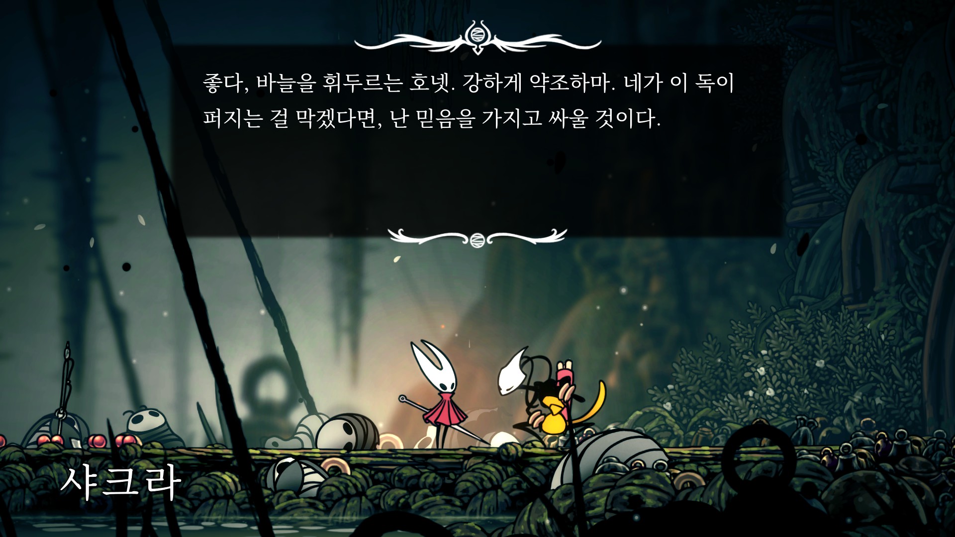 아 초반 스샷이 없네 왜 안 찍었지 3장의 셰르마 진짜 너무 귀엽고 사랑스러움 끊임없이 우리들은 뭘까요? 믿고 있으면 괜찮아요. 제가 모두를 도울게요. 하는 모습이 진짜 너무 멋졌음.... 처음엔 웬 귀여운 백치미 캐릭터인가 했더니 우리애가 ㅠㅠㅠㅠ 이렇게나 멋진 모습을 ㅠㅠㅠㅠ 셰르마가 호넷한테 친구라고 해준다고... 친. 구. 우리의 밝은 빛!